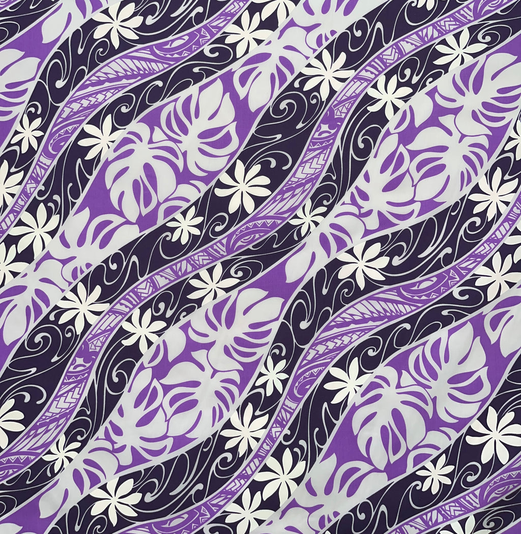 Tiare Monstera Traditional Tattoo Poly Cotton Fabric features a wave-like print combining tiare flowers and monstera leaves, offering a distinctive tropical aesthetic. Crafted from poly cotton, this fabric balances durability with easy care, making it ideal for clothing, home textiles, and uniforms such as scrubs. Its blend ensures long-lasting wear and simple maintenance, suitable for both everyday and professional use.
