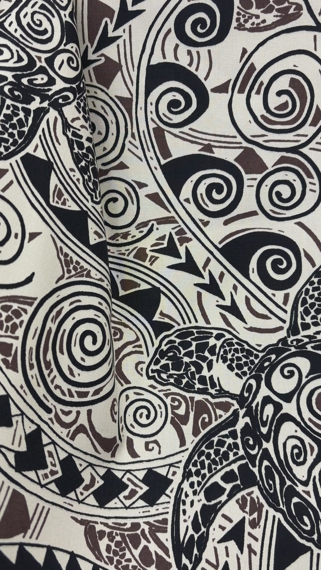 This 100% cotton fabric features a paisley-like pattern with charming turtles all over. Made from high-quality cotton, it is perfect for any sewing or crafting project. Its unique design adds a touch of whimsy to any creation. Get creative with Tiki Turtle All Over Print Fabric.