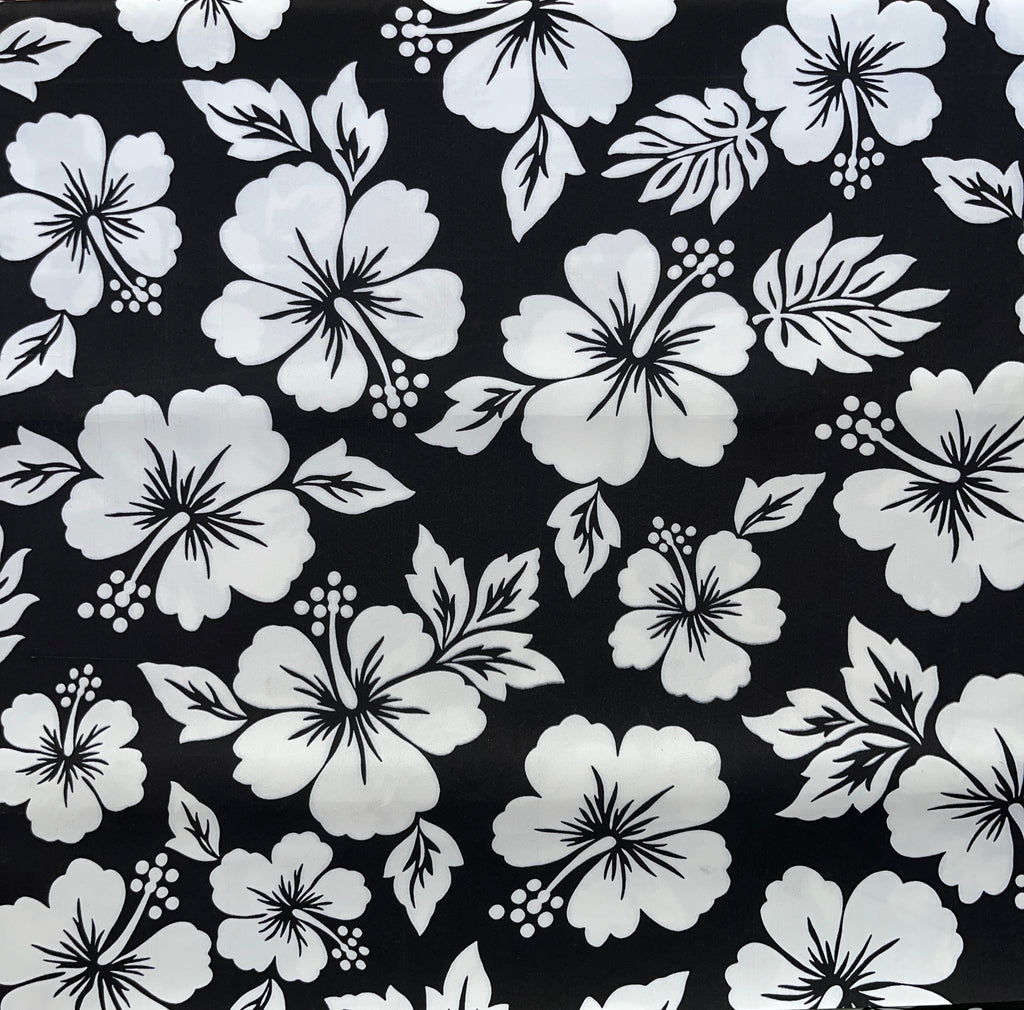 This polyester fabric features a vibrant pattern of hibiscus flowers, perfect for adding a tropical touch to any project. Made of durable polyester, it is easy to care for and retains its bright colors over time. Bring the beauty of the outdoors inside with this stunning fabric.