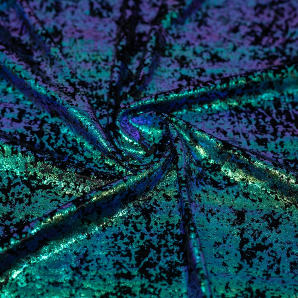 Gilded Velvet is a 4-way stretch Velvet with Foil; ideal for formal designs. Its luxurious feel and shimmering foil brings a touch of class to any design. This fabric is perfect for costumes, special occasion wear, and dance recital costumes. This fabric is lightweight yet durable and easy to work with, making it an ideal choice for various projects. It is colorfast and holds its shape well, making it perfect for long-term or daily wear. It is also easy to clean and maintain—just machine wash on a delicate cycle and hang dry or tumble dry using a cool setting.