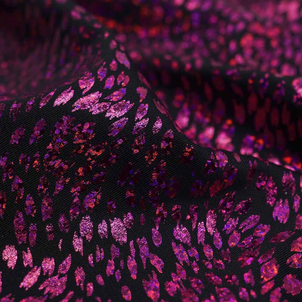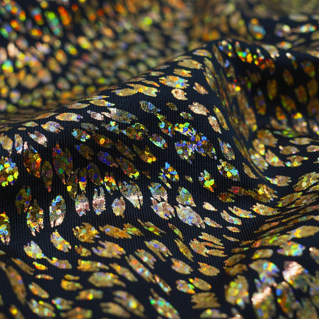 Unleash your wild side with Wild Things Nylon Spandex Fabric from Blue Moon Fabrics. This 4-way stretch fabric is perfect for creating performance costumes, gymnastics outfits, dancewear, and activewear. With a striking animal print foil design, this fabric is a must-have for those who love to stand out! Don't miss out on adding this versatile and eye-catching fabric to your collection today!