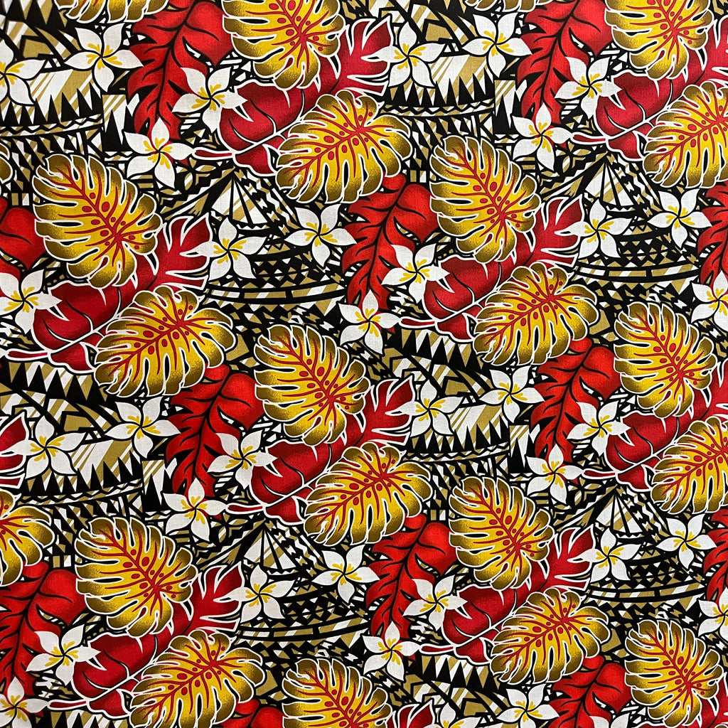 Tropical Artistry: Featuring a sophisticated "Split Leaf" Monstera and Tiare motif, this print captures the essence of traditional Polynesian design with a modern, vibrant flair.