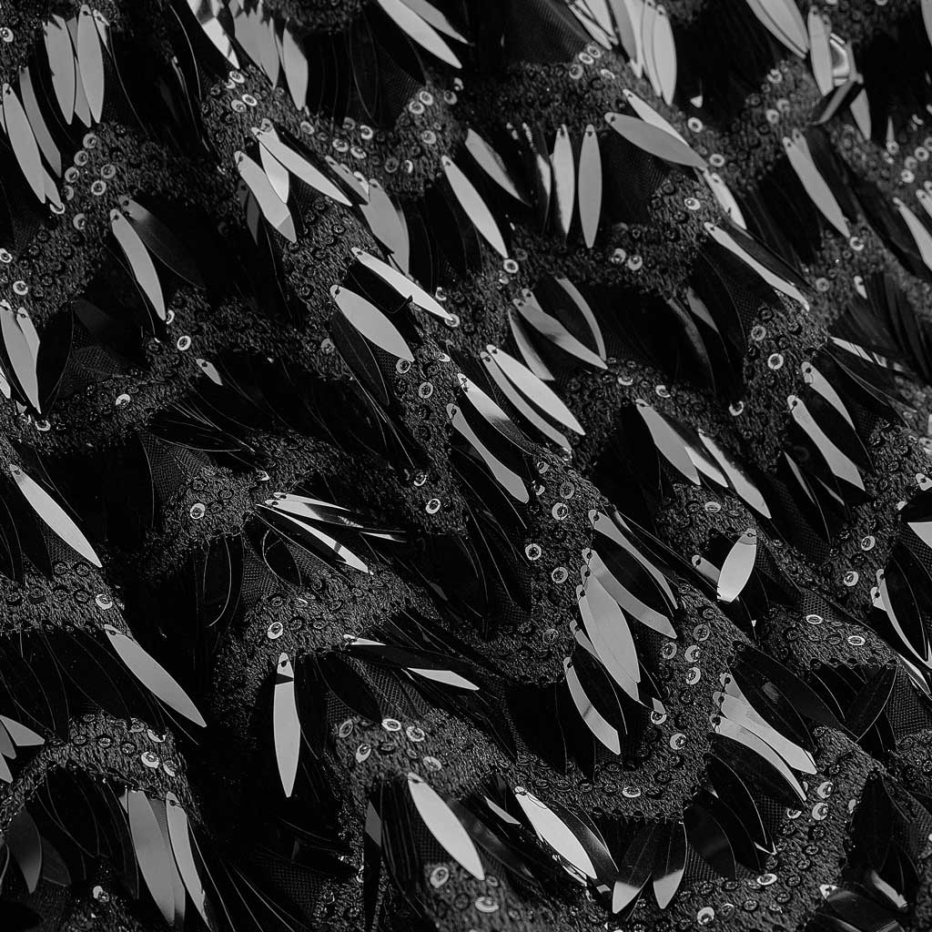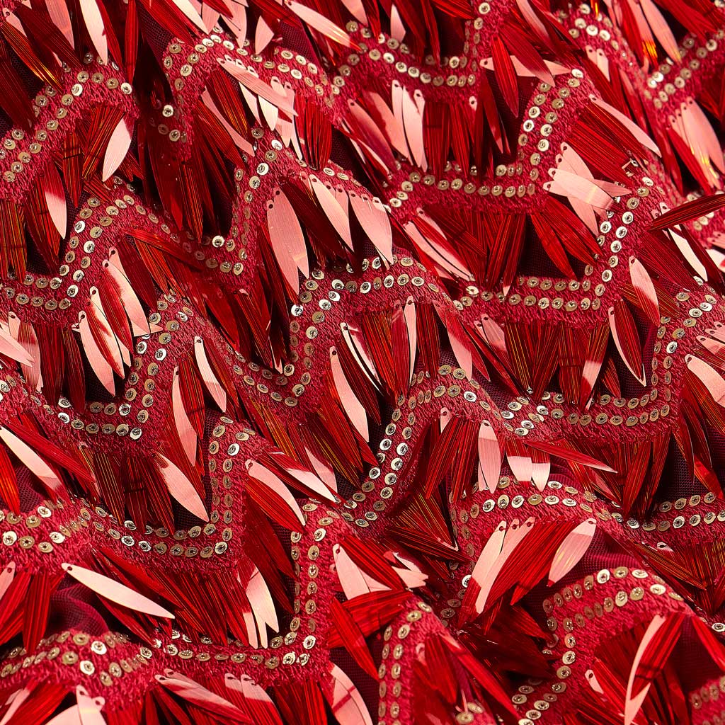 Athena is a Mechanical Stretch Embroidered Mesh with Paillettes and Sequin. This fabric is ideal for formal designs and performance costumes. It's durable and lightweight, so you can feel comfortable wearing your designs in any setting. It has a beautiful drape and is available in a variety of colors for any project. It's perfect for both casual and formal occasions, and it's easy to care for. With an array of vibrant colors available, you can create a design that really stands out.