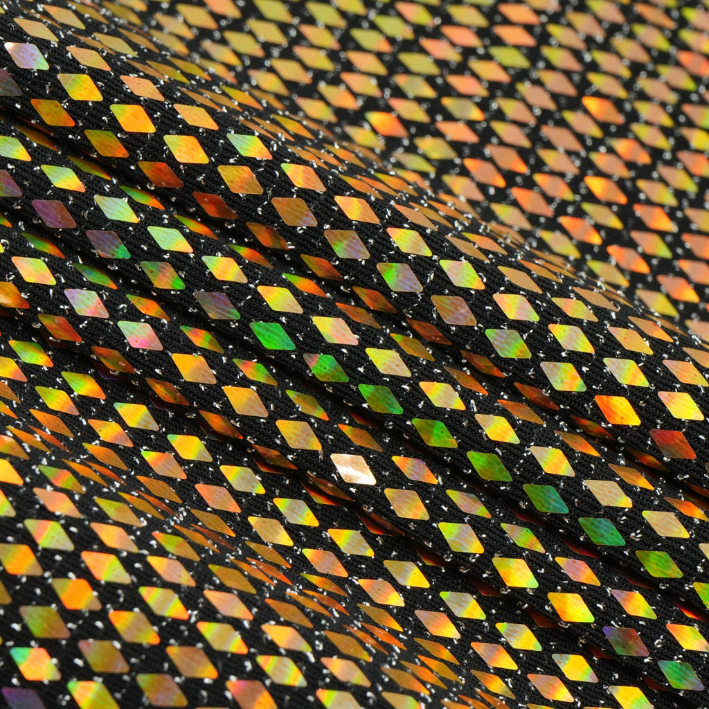Bling Nylon Spandex Lurex Fabric is a collection of vibrant stretch fabrics with dazzling metallic Lurex fibers woven into the face and a nylon spandex with holographic Diamond Transfer Sequin.