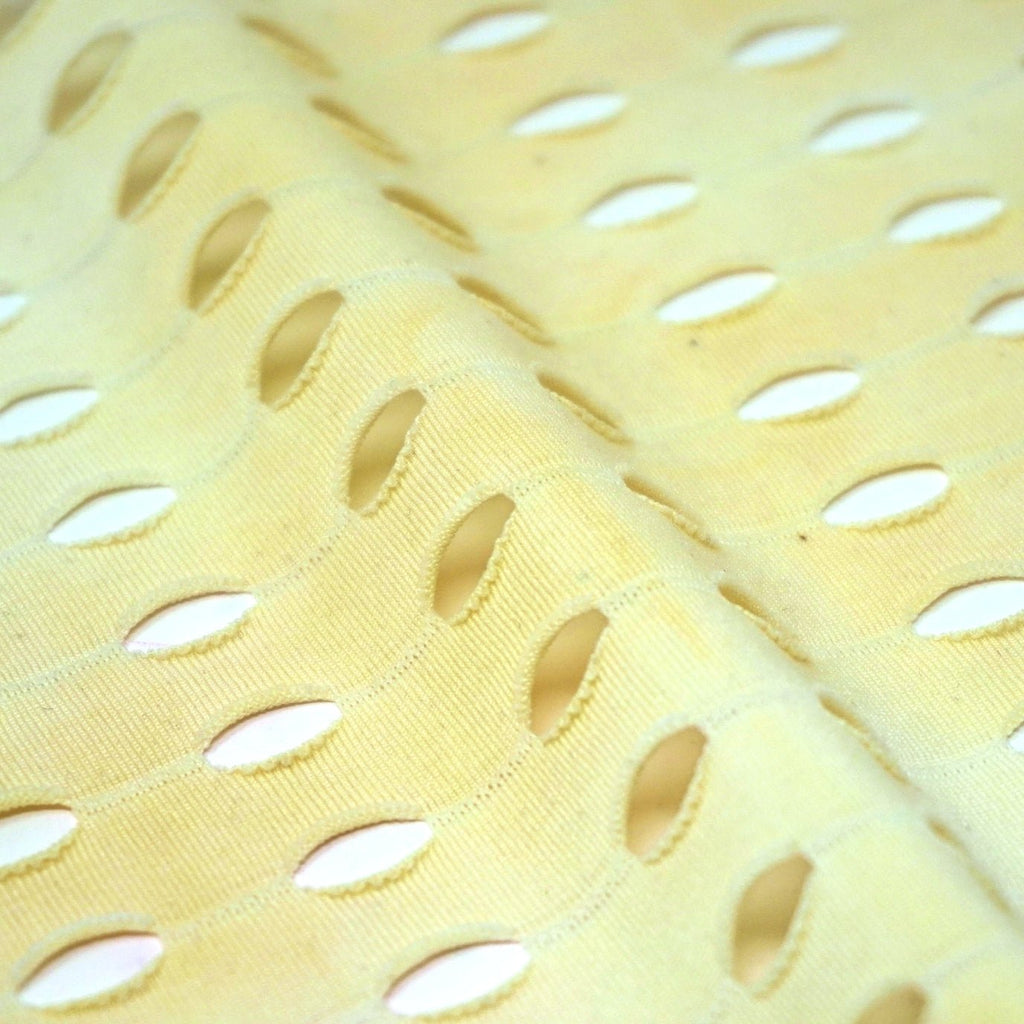 Into the Woods is a tie dyed polyester spandex with a perforation print. The light texture and flowy nature make this fabric great for dancewear, performance costumes and fashion concepts. Its lightweight and breathable nature also makes it an ideal choice for activewear, allowing you to stay comfortable and cool while you move throughout the day. Plus, the fabric is durable and colorfast, allowing you to enjoy your garments for long-lasting use.