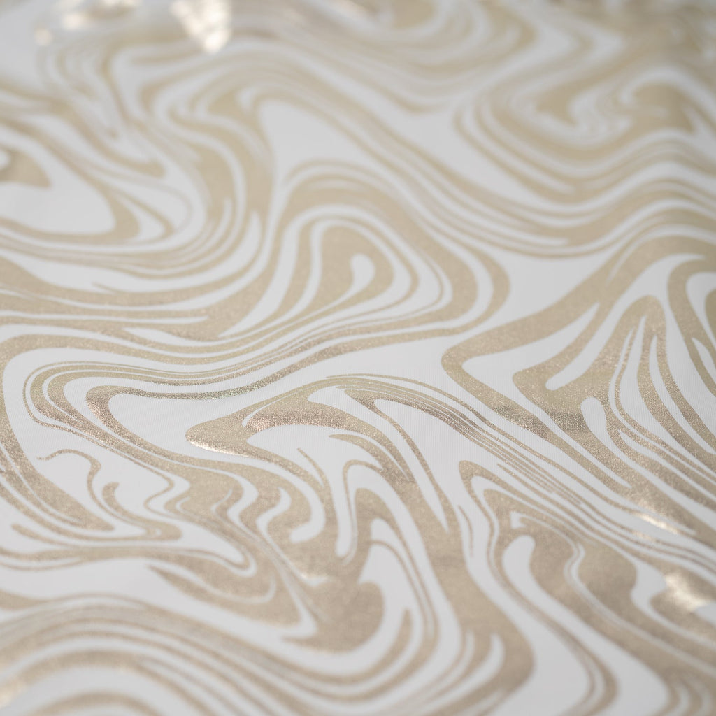 Marble Foil Printed on Superflex is a collection of heavy-weight compression nylon spandex tricot featuring a stylish metallic marble foil print. With its opaque 4-way stretch base, these fabrics are ideal for dance wear, performance costumes, and activewear fashion including leggings and sports bras. Find coordinating solid colors in our Superflex Heavy Compression Spandex collection. This fabric is designed for both comfort and durability, with a high quality that's built to last. Enjoy the optimal range of motion that comes with a four-way stretch, as well as superior breathability and quick drying.