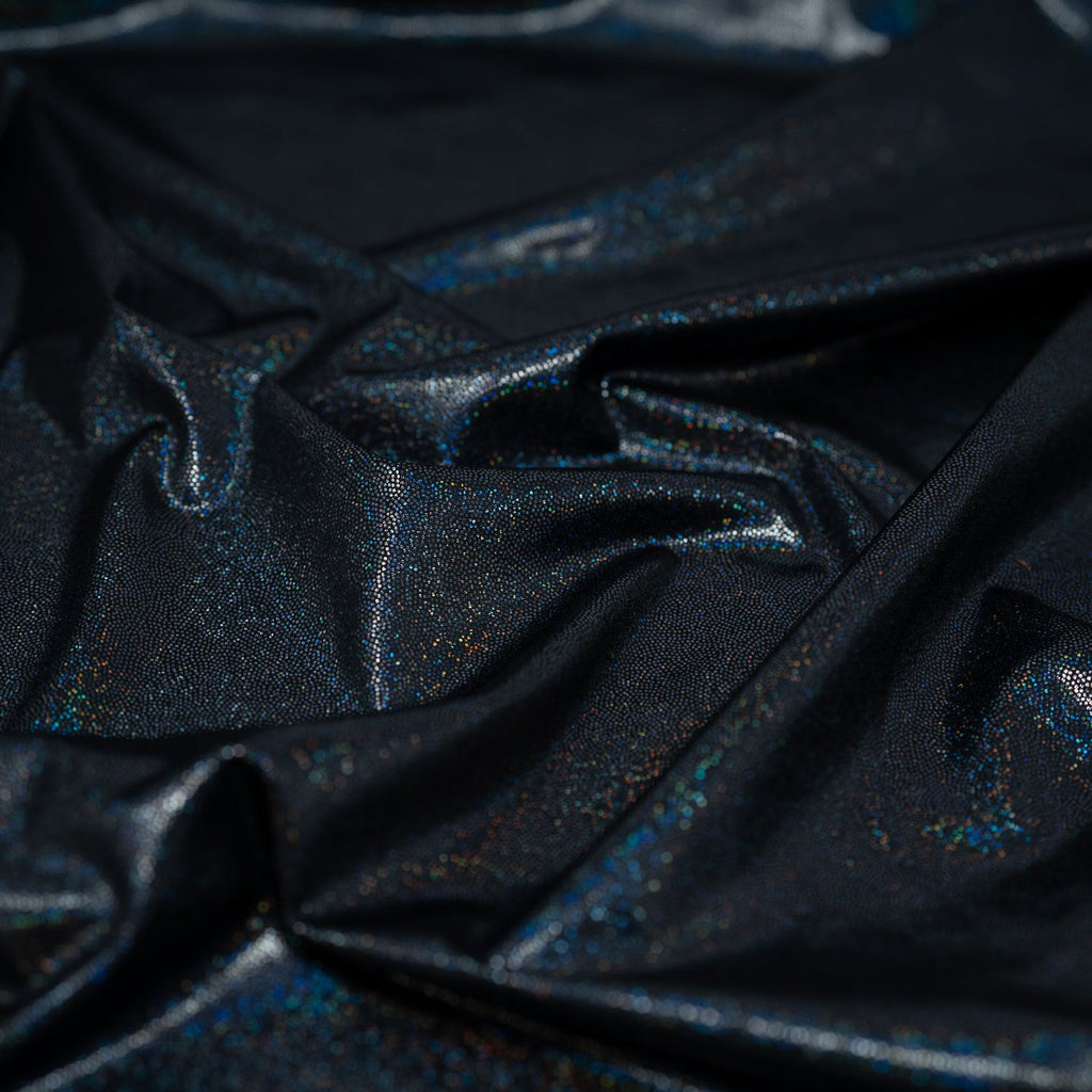 Mini Sparkles is a light weight 2-way stretch fabric with a holographic all-over dot pattern. With their reflective shimmer, these fabrics are ideal for dancewear, gymnastics, performance costumes and festival fashion. Mini Sparkle Foiled Spandex fabric is also durable and easy to care for, making it an ideal choice for design projects and everyday wear. Its lightweight design ensures maximum comfort and flexibility. This fabric's vibrant shimmer and resilience make it a perfect choice for any project. This fabric can handle any type of movement, and its sparkling finish looks equally stunning in any light. This fabric also holds its shape and vibrancy wash after wash for a long-lasting, beautiful piece of fabric.