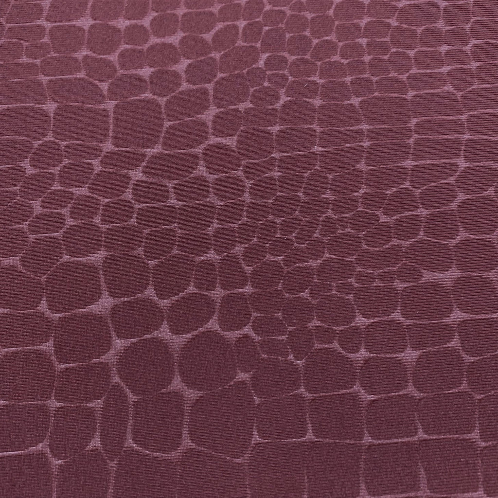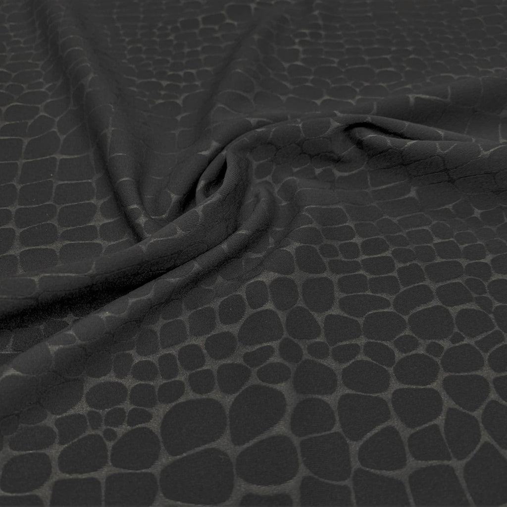 Rockodile is a 4-way stretch Recycled Polyester Spandex with an Embossed Crocodile design. This fabric is ideal for performance costumes and dance fashion. The fabric is lightweight and breathable, making it perfect for both active and everyday wear. Its eco-friendly properties make it a great choice for environmentally-conscious fashion designers. It also offers maximum comfort with a soft hand feel and high-stretch recovery, so pieces will look great wear after wear. Rockodile is designed for durability and versatility, making it the ideal choice for sustainable and fashionable styles. Enjoy vibrant colors and a comfortable fit with this fabric that offers both eco-friendly benefits and aesthetic appeal.