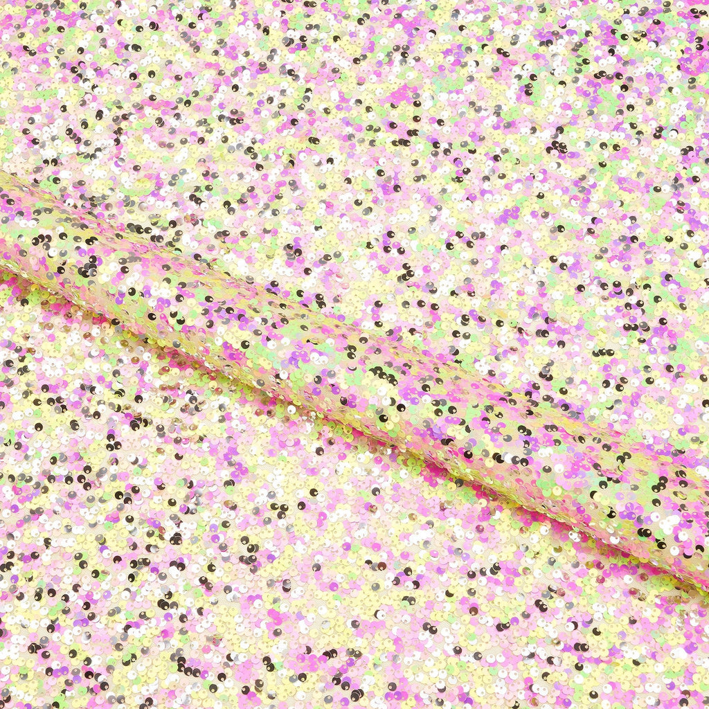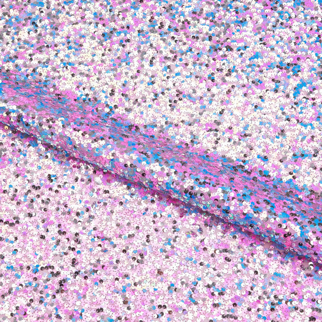 Too Fun Sequin on mesh in multiple colors, designed for use in dancewear and cosplay. A versatile material for costumes or wardrobe pieces that catches the eye. Its lightweight, shimmering texture is perfect for adding a touch of sparkle to any outfit.